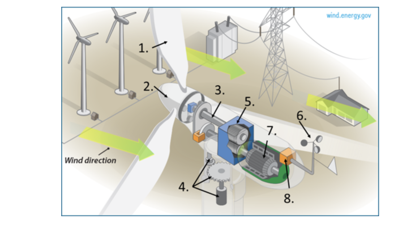 Wind turbine diagram with labels